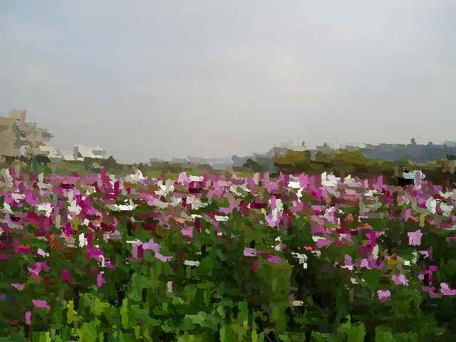 多摩川の河川敷で、コスモスが咲き乱れている。台風が来て、大水が出たらお終い(おしまい)だろう。根こそぎ流されてしまうから。